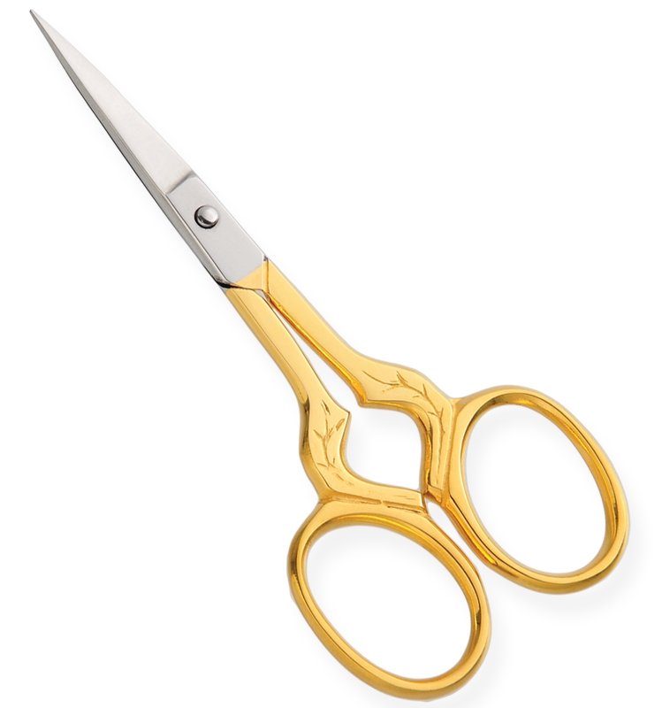 Embroidery Scissors Half Gold Platted Available Sizes. 3.5 Details. All scissors are made of superior quality stainless steel 410, HRC° (hardness) 45° – 48°. Available in Blister Packing, Pouches and Plastic Bags.
