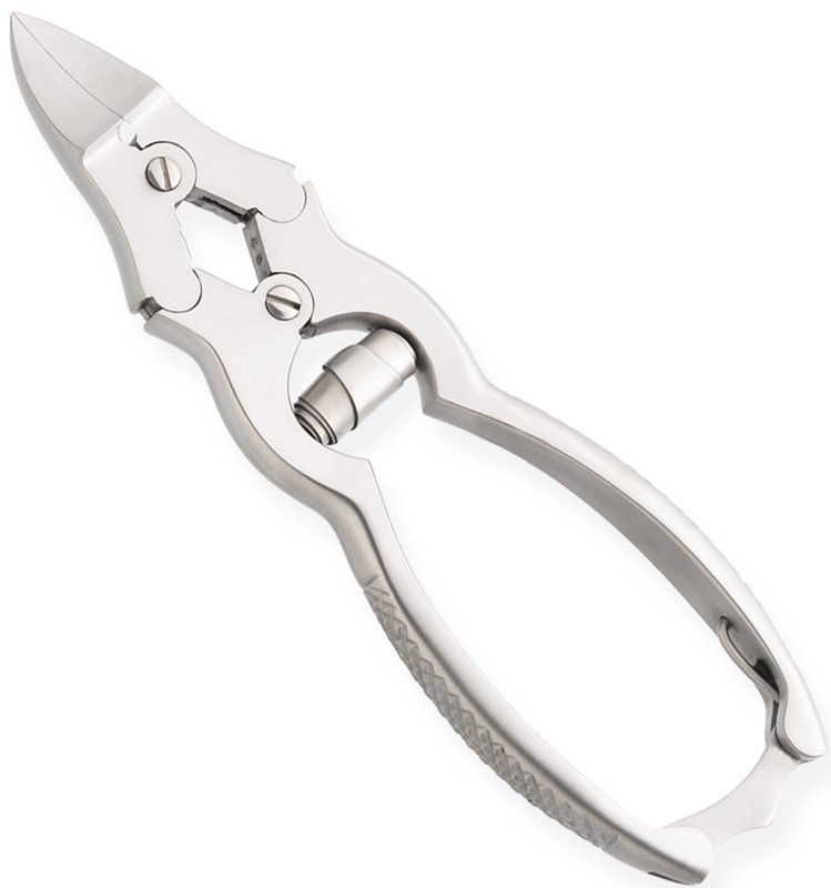 Toe Nail Cutter Textured Handle with Back Lock Available Sizes. 5.5 in Details. Implements produced for professional usage are made of Japanese stainless steel J/2 – 420, HRC° (hardness) 52° – 55°. Implements produced for personal usage are made of superior quality stainless steel 410, HRC° (hardness) 45° – 48°.